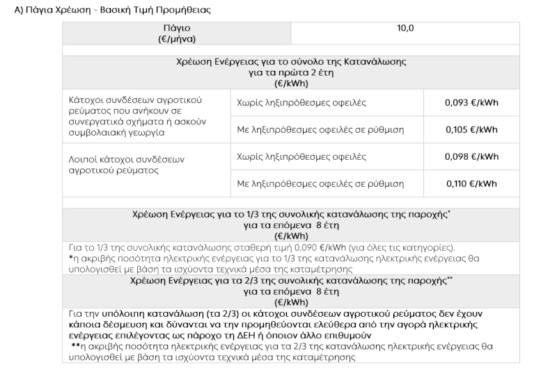 Πρόκειται για το τιμολόγιο στο οποίο – όπως ανέφερε χαρακτηριστικό ο υπουργός Θόδωρος Σκυλακάκης – οι αγρότες θα έπρεπε να είχαν υποβάλει αιτήσεις ένταξης “ήδη από χθες” (η προθεσμία υποβολής αιτήσεων λήγει στις 31 Οκτωβρίου)